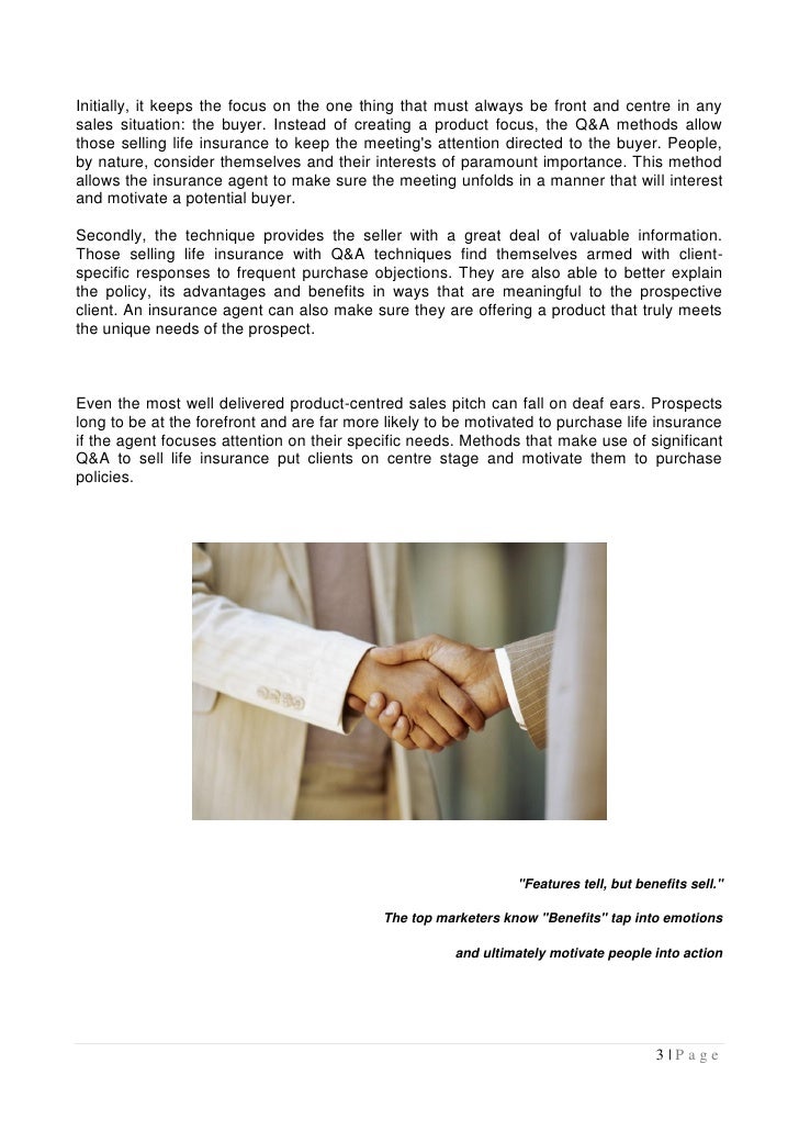 SAMPLE Selling Manual for Rocksolid Malpractice Insurance Group (a fictitious company) Developed from the working copy of your sales manual. TABLE OF CONTENTS Inventory and Description of Tools 3 Features and Benefits 5 Mission Statements 6 ... Return Doc